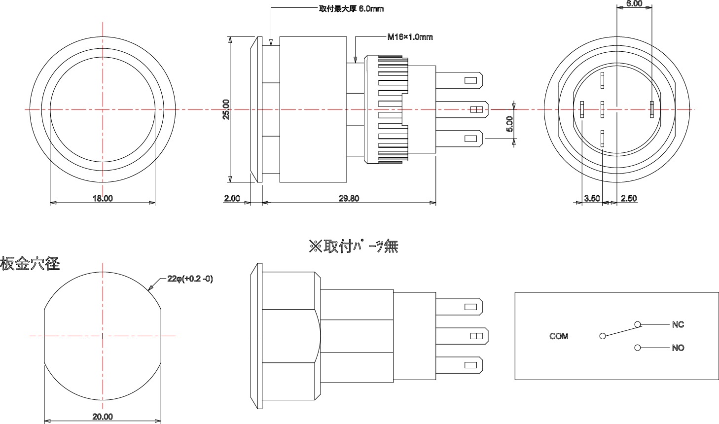 プラスチックスイッチ LED付 22mm モーメンタリータイプ 1回路 C接点(ホワイト)